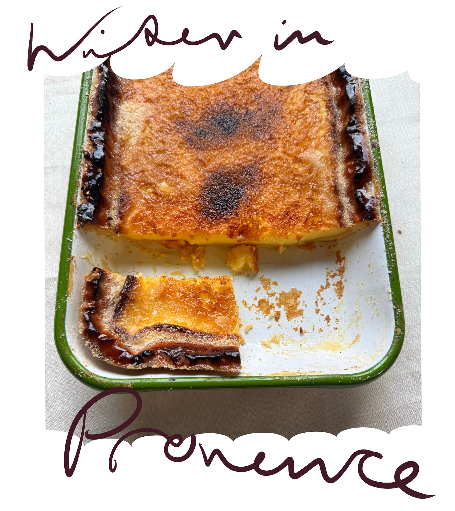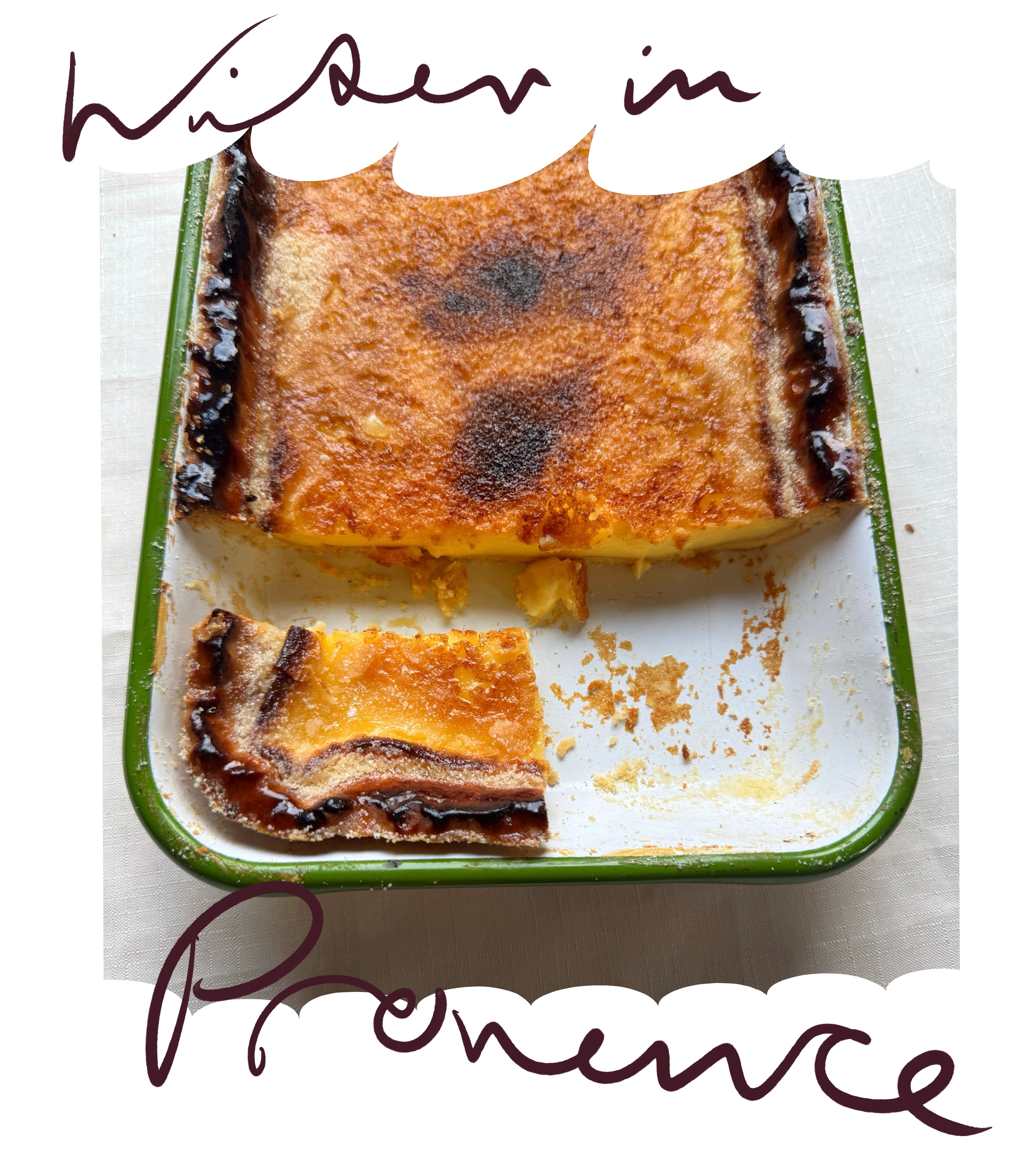 I am currently prepping a dinner for my mate Rocky. It’s 9pm and I still need to make the meringue for the white chocolate rhubarb pavlova. It’s going to be a late one but all is good, because I have some of that crème brûlée tart to snack on while I work. It’s actually by my side, winking at me right now. It tastes like a slice of creamy vanilla heaven, let me tell you.